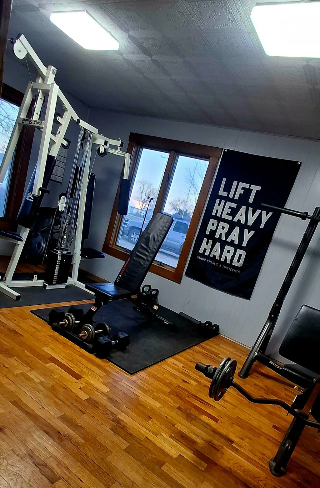 Lift Heavy. Pray Hard. Banner Flag.